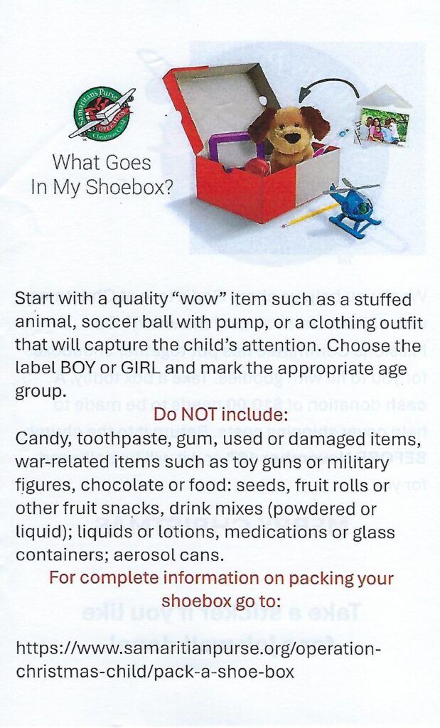 Our blessing box is open 24/7 as is our clothing shed, a place you can donate clothing items and shoes.