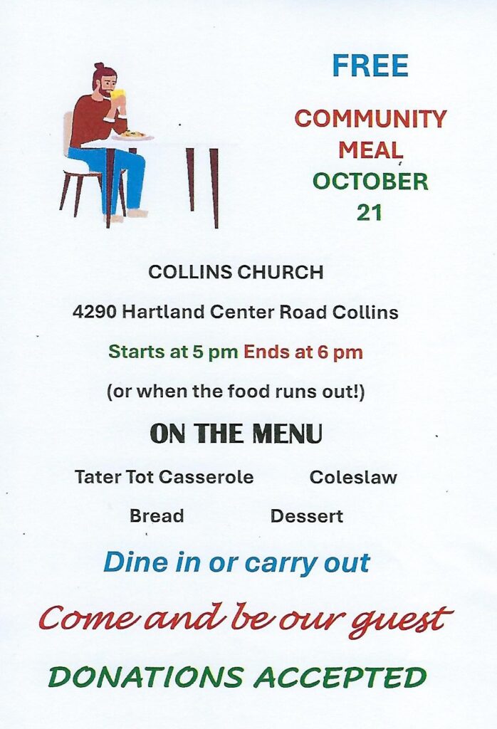 Our fellowship hall is also known as The Gathering at Collins. It is an event venue conveniently located in the heart of Collins, Ohio and is operated by The Collins Church. It is conveniently located between Norwalk, Berlin Heights, Wakeman. It’s the perfect place for a quaint, country wedding, a graduation party, a baby shower, a family reunion, a corporate event, and more! When you choose The Gathering at Collins for your party, meeting, or special event, you can count on our friendly staff to help make your day special!